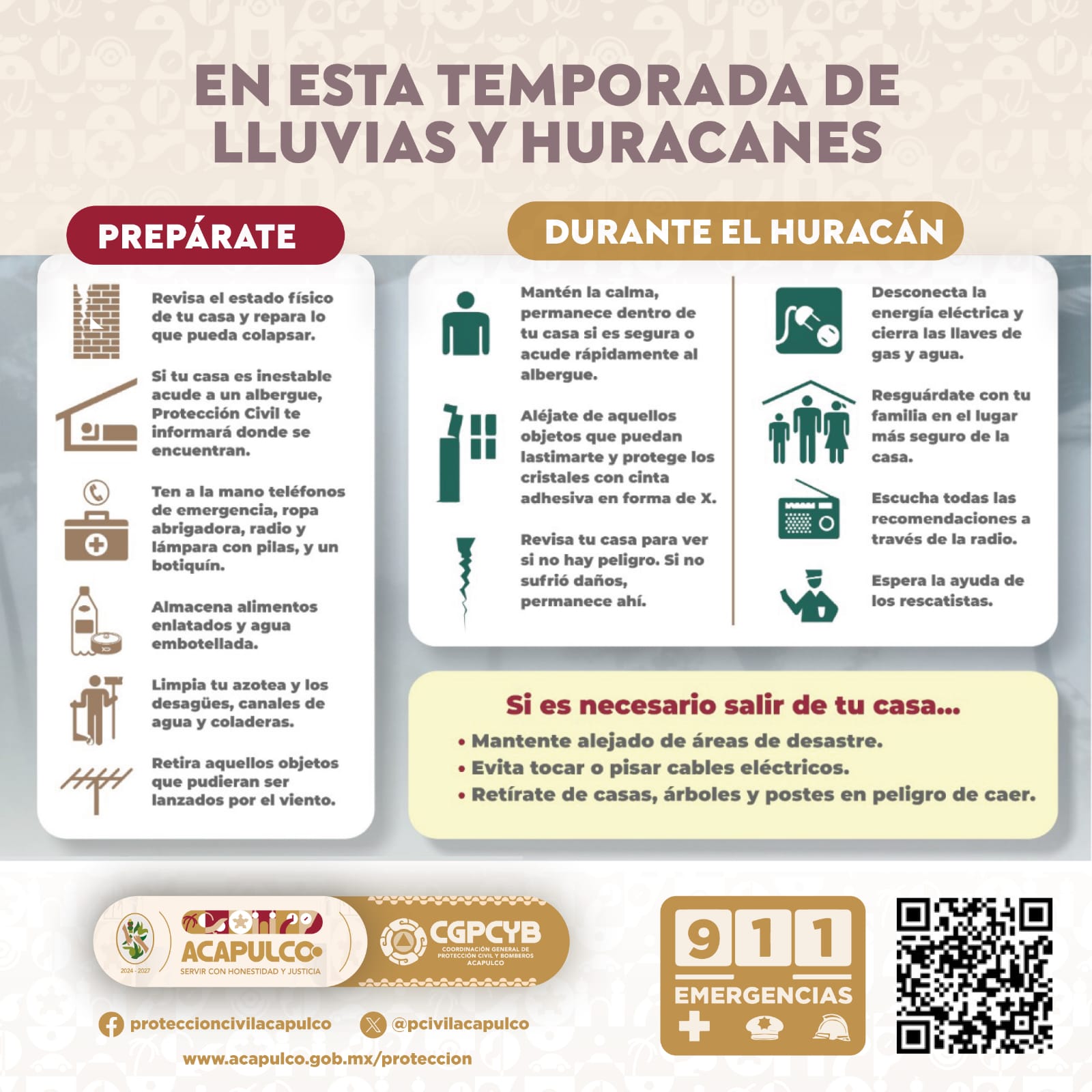 Emite Gobierno de Acapulco recomendaciones a la población por temporada de lluvias y huracanes