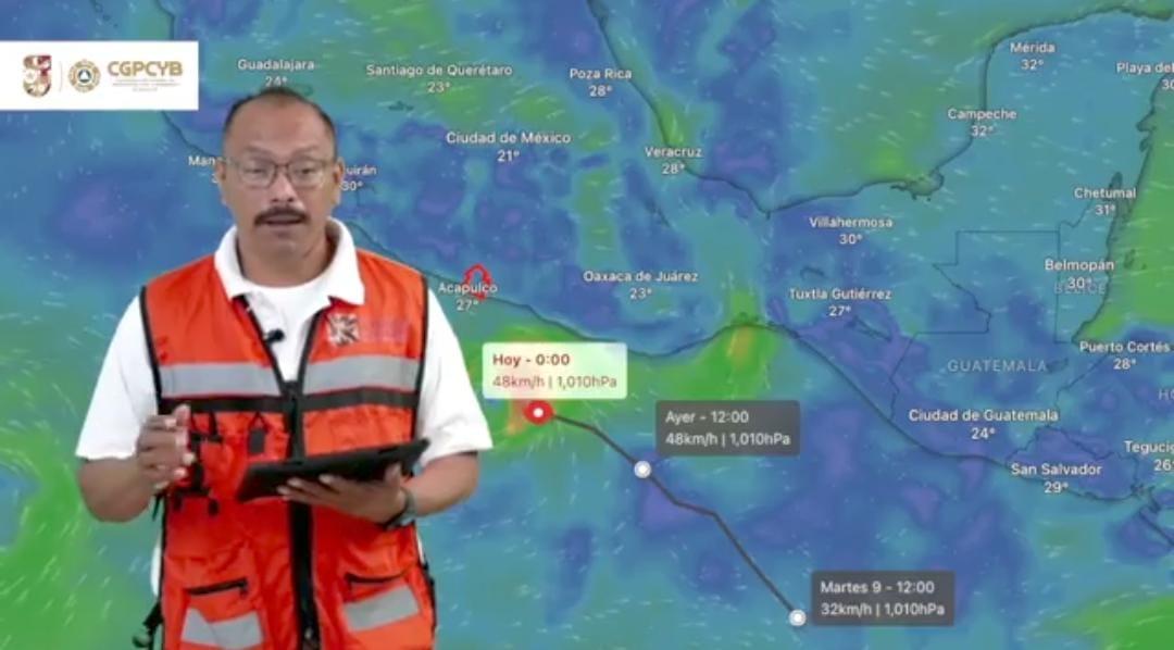 Acapulco, Gro., 11 de septiembre de 2025.- La Coordinación General de Protección Civil y Bomberos Acapulco alerta sobre la posible formación de un ciclón tropical frente a las costas de Guerrero y exhorta a la ciudadanía a tomar precauciones.