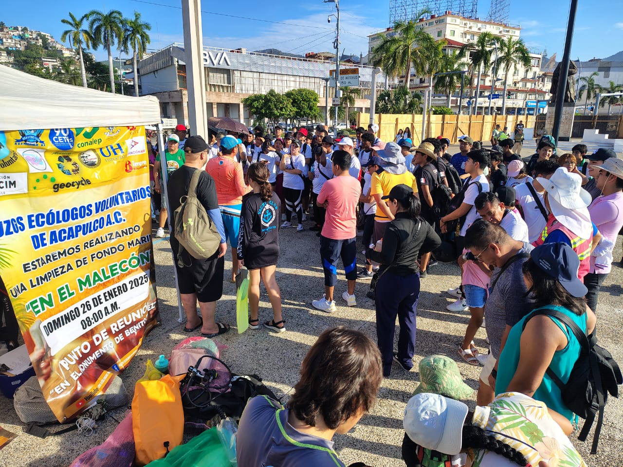 En la jornada participaron seis integrantes de la Asociación de Buzos Ecólogos Voluntarios, 16 buzos del equipo Ancora Buceo Scuba School de Toluca y Ciudad de México, así como más de 80 estudiantes de instituciones como CECATI 185, CONALEP y CETIS 90. Los brigadistas limpiaron la franja de arena, la zona rocosa y el fondo marino; posteriormente, separaron los desechos y regresaron al mar los moluscos que habían quedado incrustados en residuos.