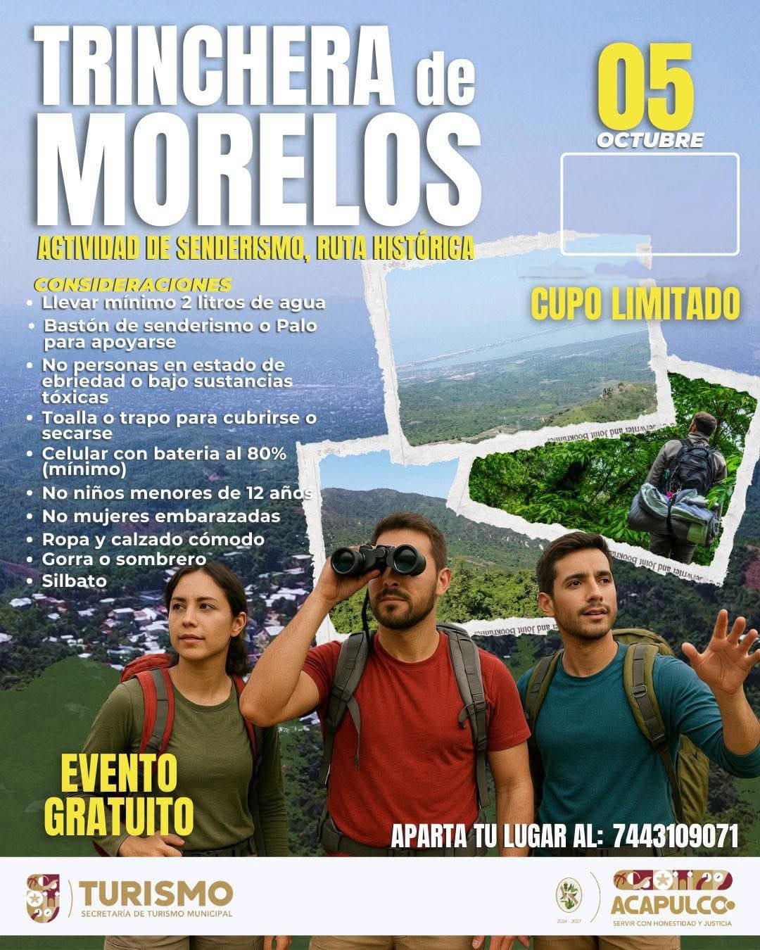 La convocatoria está limitada a 100 personas y el punto de encuentro será la entrada de la colonia Emiliano Zapata, a las 7:30 de la mañana. Se recomienda a los asistentes portar ropa adecuada, hidratación, protector solar y gorra. Para mayores informes, la ciudadanía puede comunicarse al teléfono 744 310 9071.