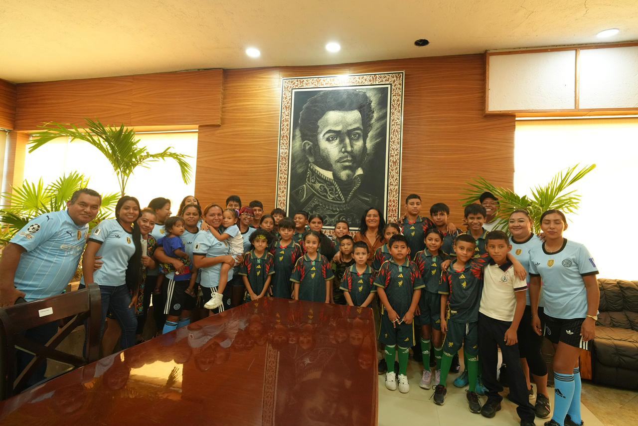 *Entrega uniformes a integrantes del club Dragones FC del Kilómetro 21 y reitera su apoyo a la infancia