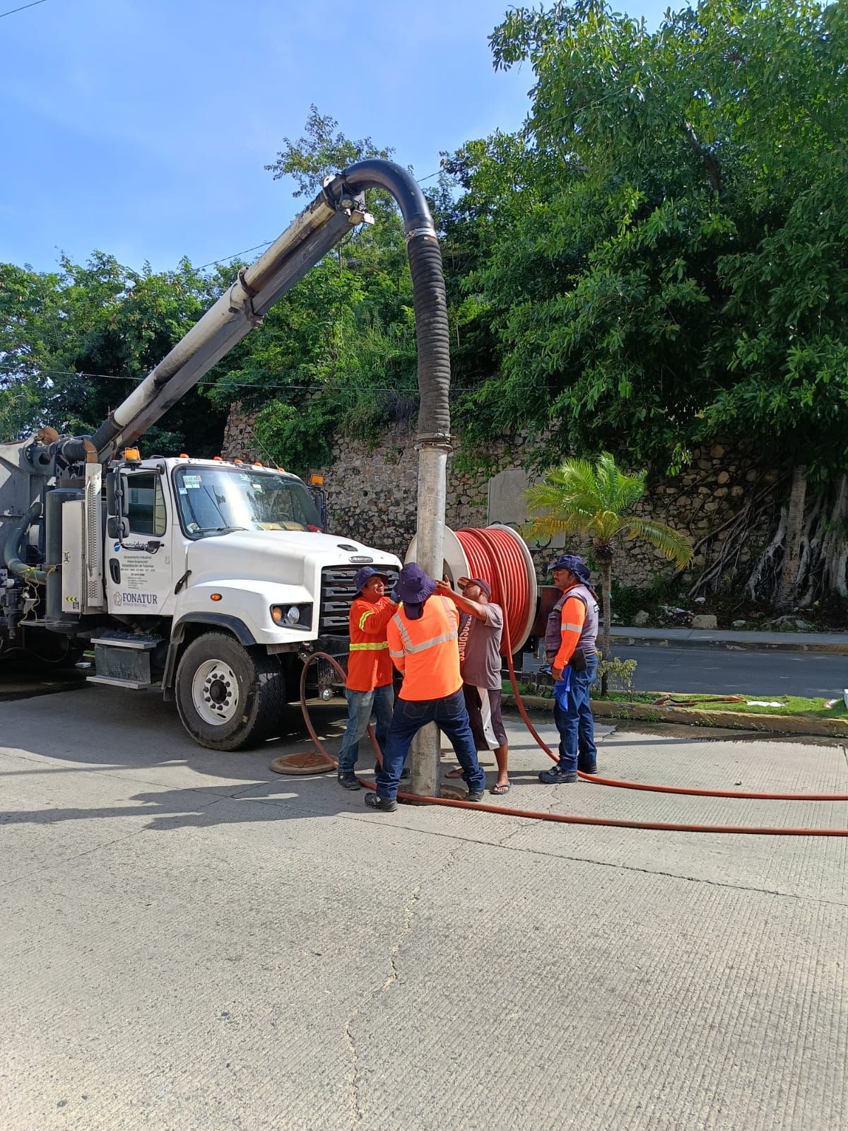 De manera adicional, brigadas de Capama efectuaron labores de desazolve en pozos de visita ubicados a lo largo de la avenida Costera Miguel Alemán, desde la Base Naval hasta Caleta, así como en la avenida Cuauhtémoc y Puerto Marqués, donde se utilizaron varillas, malacates y, en los puntos de mayor complejidad, el camión vactor.