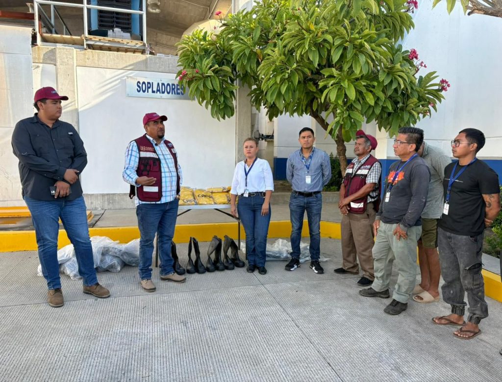 En la planta de tratamiento de Aguas Blancas, Rojas Marcial informó que la Capama ha proporcionado chalecos, gorras, botas, cascos y guantes a gran parte del personal. En esta entrega se distribuyeron 120 pares de botas de hule y 100 impermeables, con una inversión superior a los 100 mil pesos.