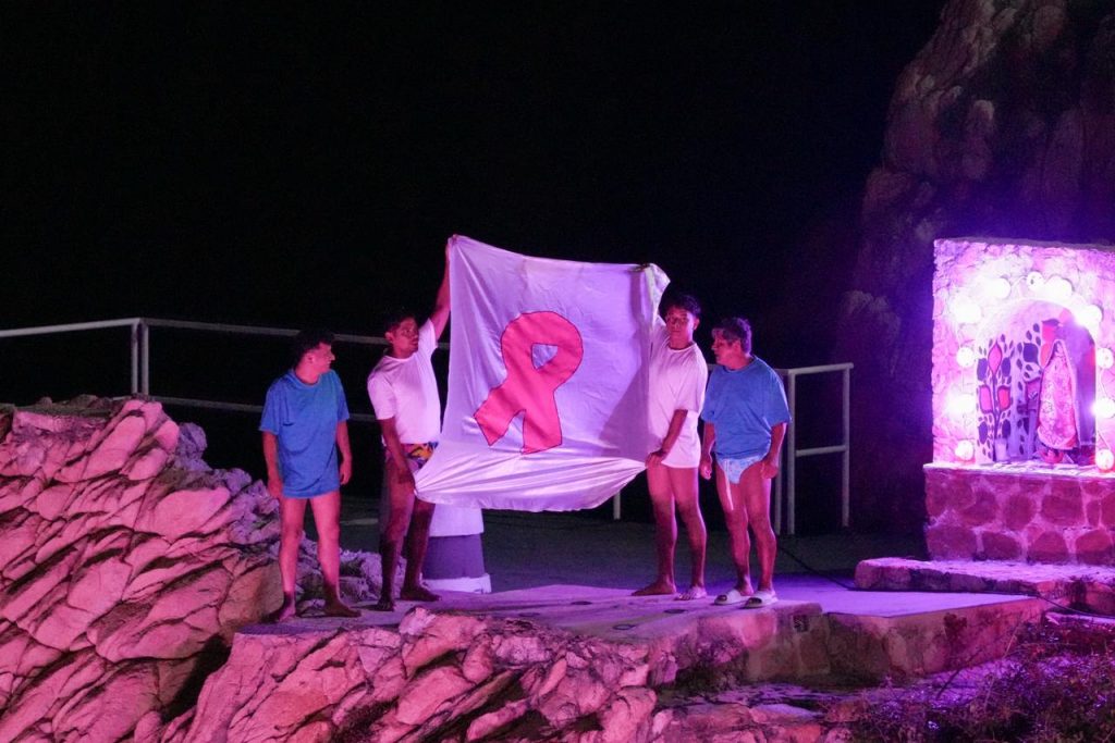El acto concluyó con el encendido rosa en los acantilados, donde se proyectaron mensajes que invitan a la autoexploración. Los clavadistas ofrecieron su tradicional espectáculo como muestra de solidaridad con quienes enfrentan la enfermedad.