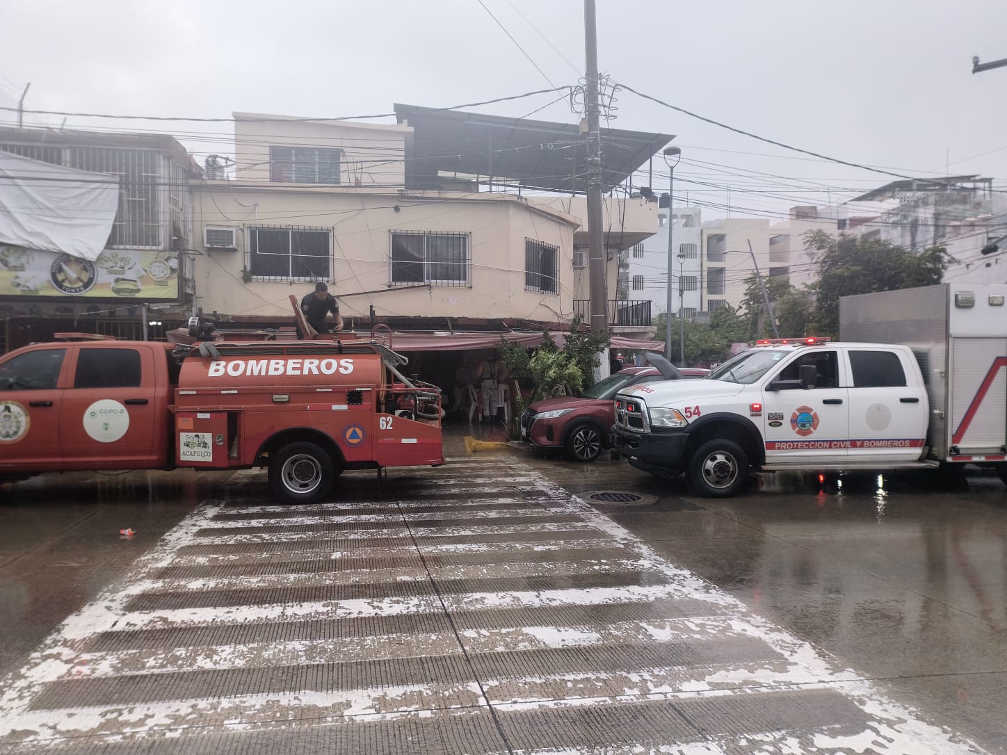 Acapulco, Gro., 09 de octubre de 2025.- Bomberos de Acapulco extinguieron un incendio registrado en un apartamento ubicado sobre la avenida Costera Miguel Alemán, frente a la cancha de la CROM.