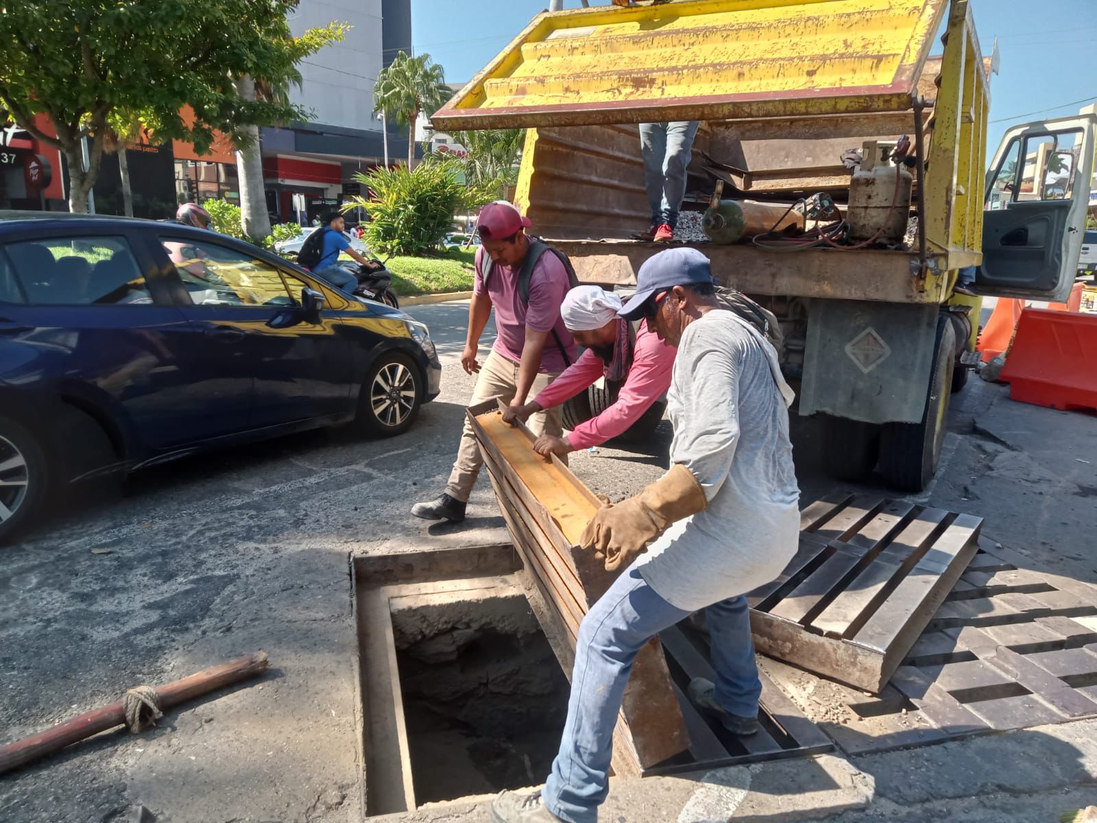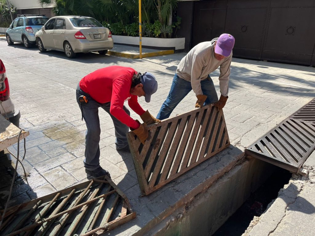 Durante la semana del 24 al 28 de noviembre se ejecutaron trabajos de rehabilitación, instalación de tapas y mantenimiento de rejillas pluviales. En la calle 8, esquina con Emiliano Zapata, colonia Bella Vista, se colocaron dos tapas y se retiró manualmente escombro acumulado. En la avenida Costera Miguel Alemán, esquina con Juan Serrano, fraccionamiento Magallanes, se demolió concreto hidráulico deteriorado y se instaló un marco de 4 pulgadas de 1.55 por 1.39 metros.