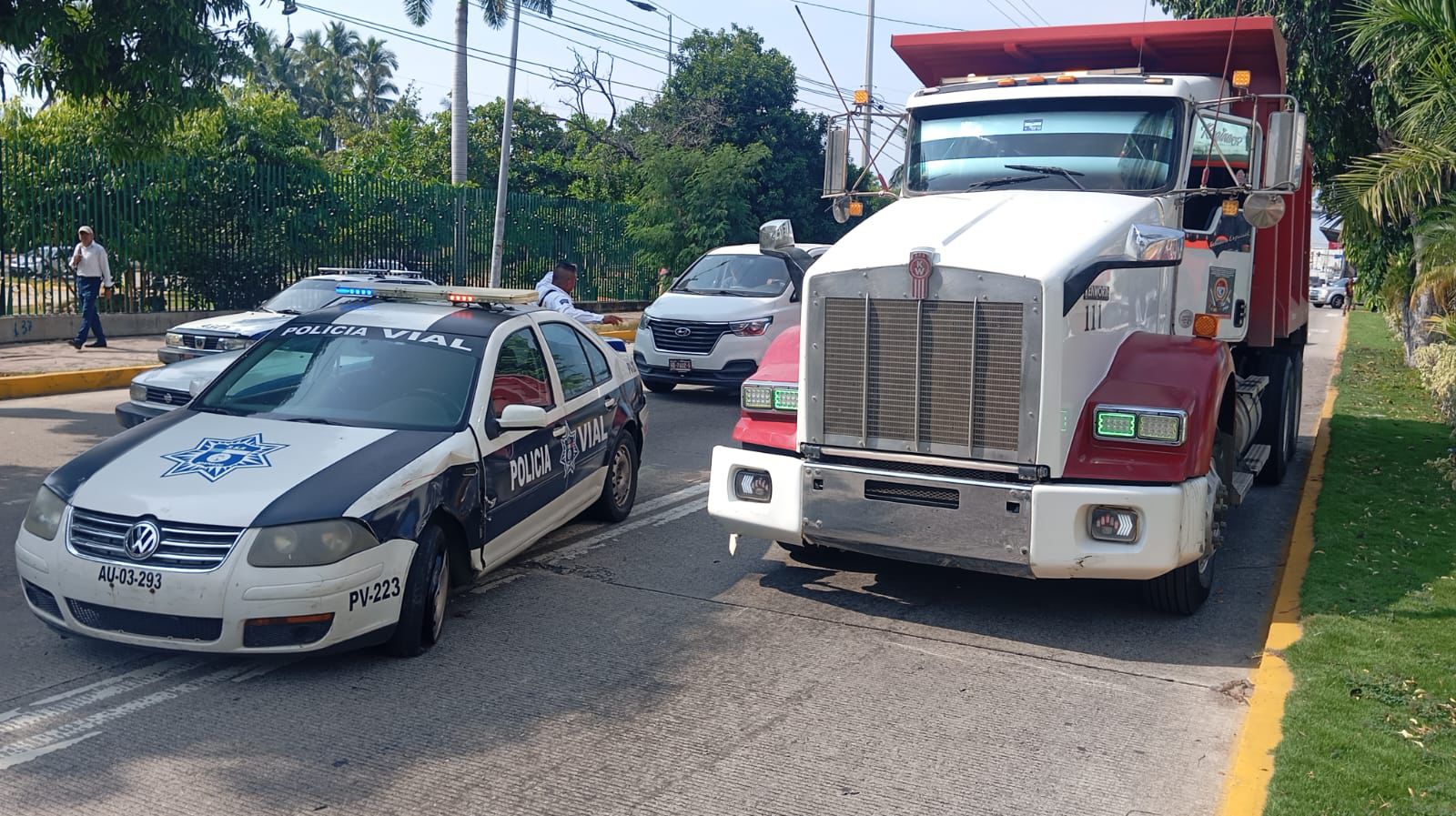Acapulco, Gro., 01 de noviembre de 2025.- Elementos de la Policía Vial de la Secretaría de Seguridad Pública Municipal atendieron un incidente sobre la avenida Cuauhtémoc, a la altura del cuartel de la Guardia Nacional, luego de que el conductor de un camión de carga ignorara las indicaciones de un agente y emprendiera la huida, lo que provocó una persecución que concluyó en el mismo punto.