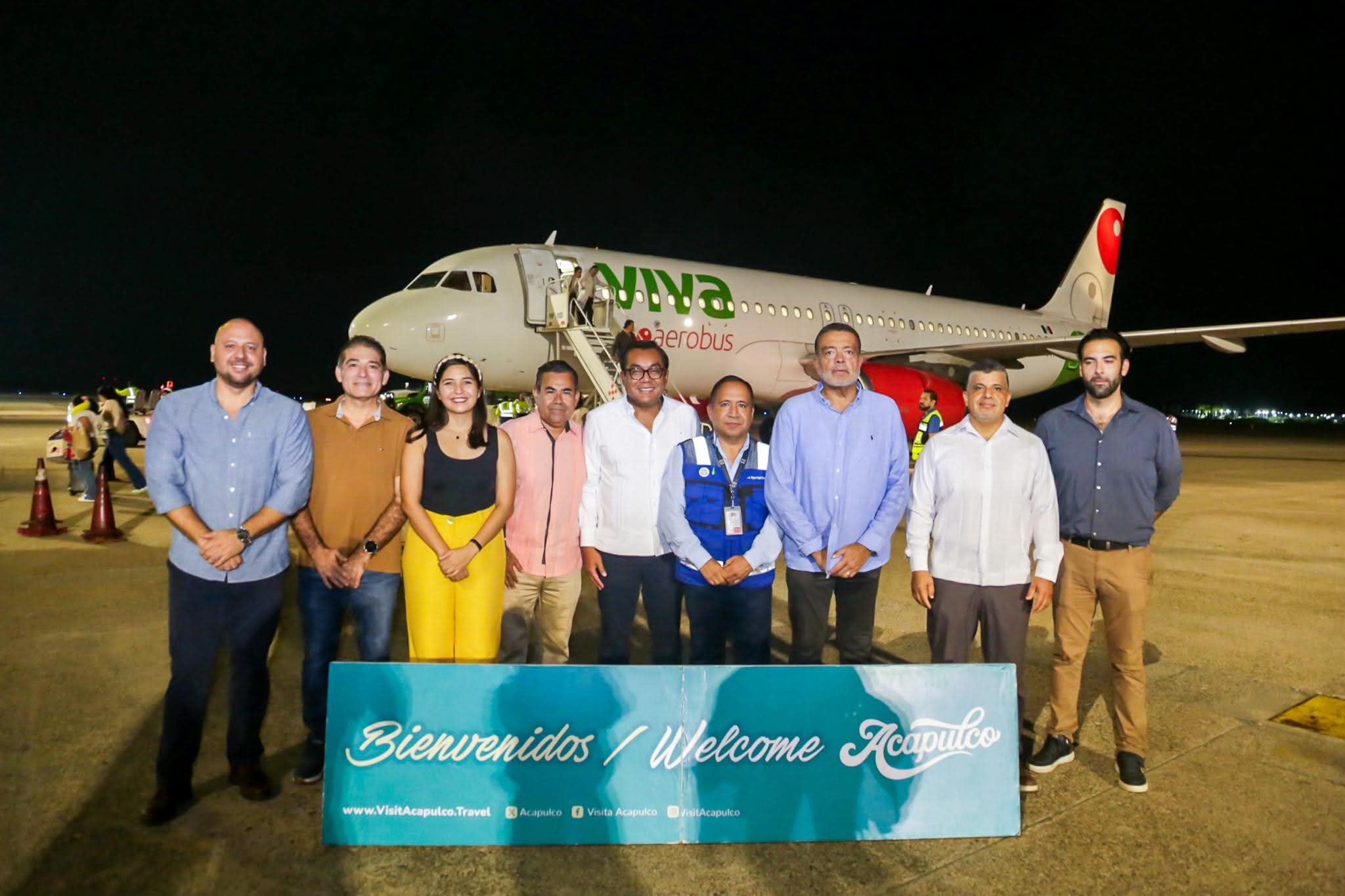 En representación de la presidenta Abelina López Rodríguez, el secretario de Turismo, Noé Peralta Herrera, asistió a la recepción del vuelo acompañado del secretario de Turismo del Estado de Guerrero, Simón Quiñones Orozco; el subsecretario de Fomento Turístico, Daniel Martínez de Pinillos; y la directora del Fideicomiso para la Promoción Turística de Acapulco (Fidetur), Aida Pérez.