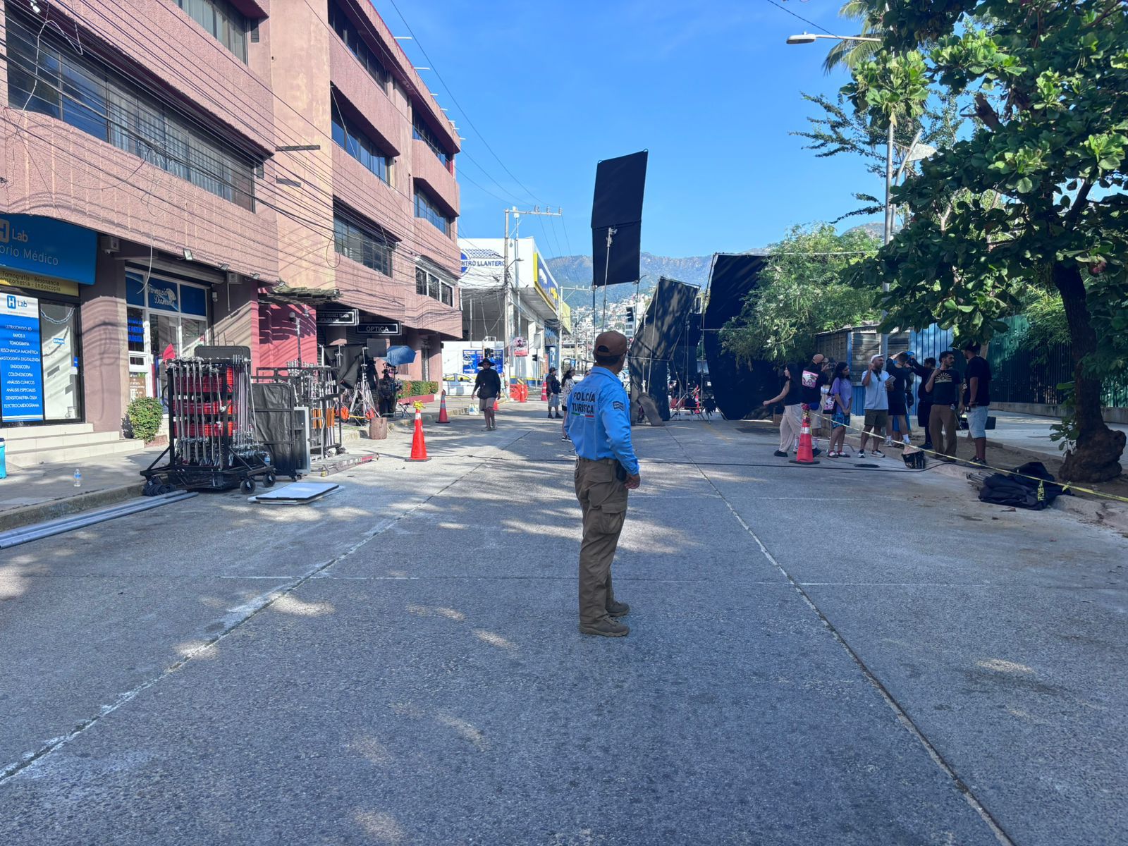Acapulco, Gro., 28 de noviembre de 2025.- La Secretaría de Seguridad Pública Municipal (SSP), a través de las corporaciones Turística, Urbana y Vial, mantiene vigilancia y resguardo en el área donde avanza la filmación de la película “Teresa”, producida por la casa productora Edge Films.