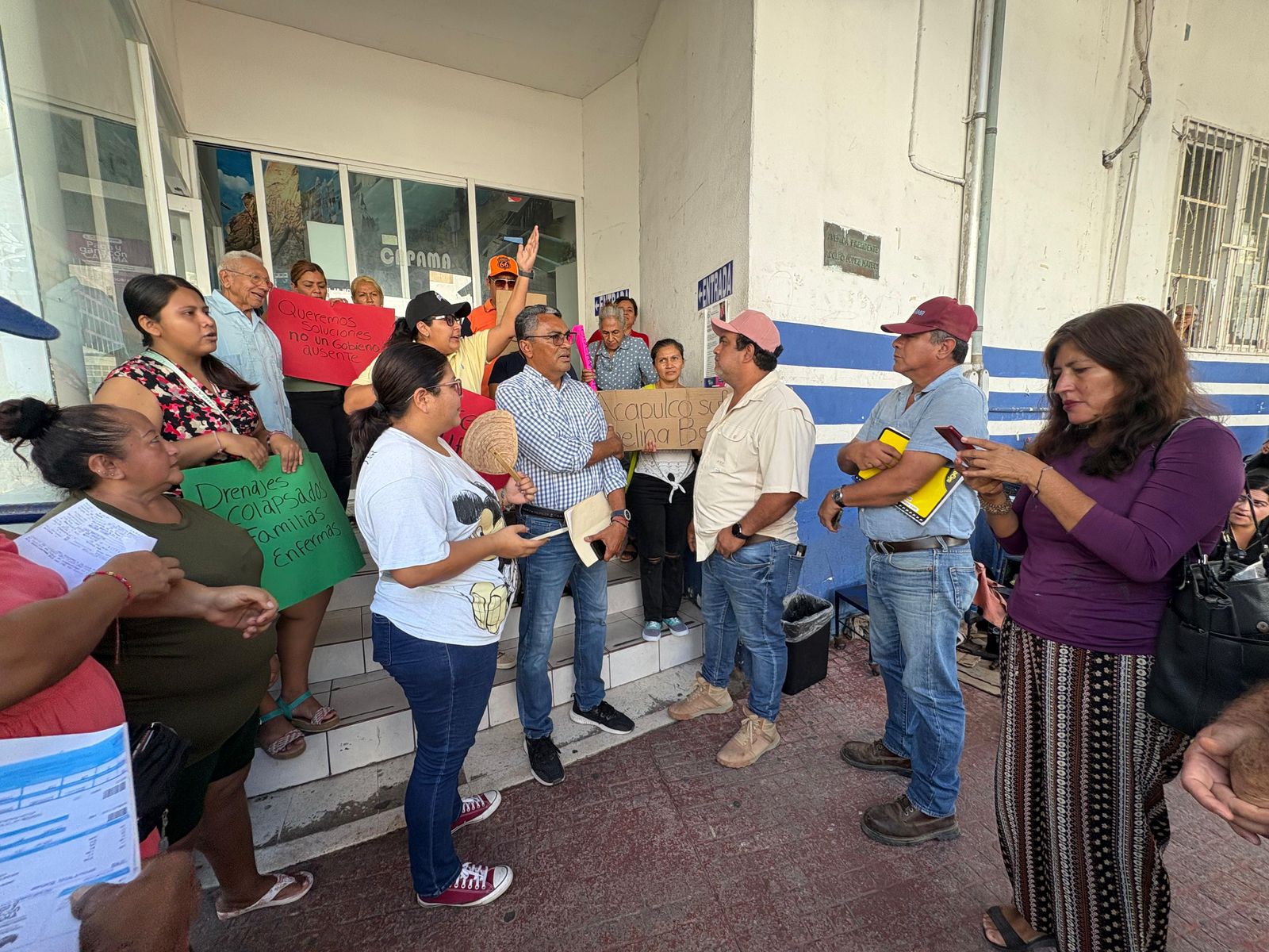 Acapulco, Gro., 04 de diciembre de 2025.- En seguimiento a las indicaciones de la presidenta Abelina López Rodríguez, funcionarios de la Comisión de Agua Potable y Alcantarillado del Municipio de Acapulco (CAPAMA) recibieron esta mañana a ciudadanos de distintas colonias que se congregaron frente a las oficinas del organismo, ubicadas sobre la avenida Adolfo López Mateos, en el centro de la ciudad.