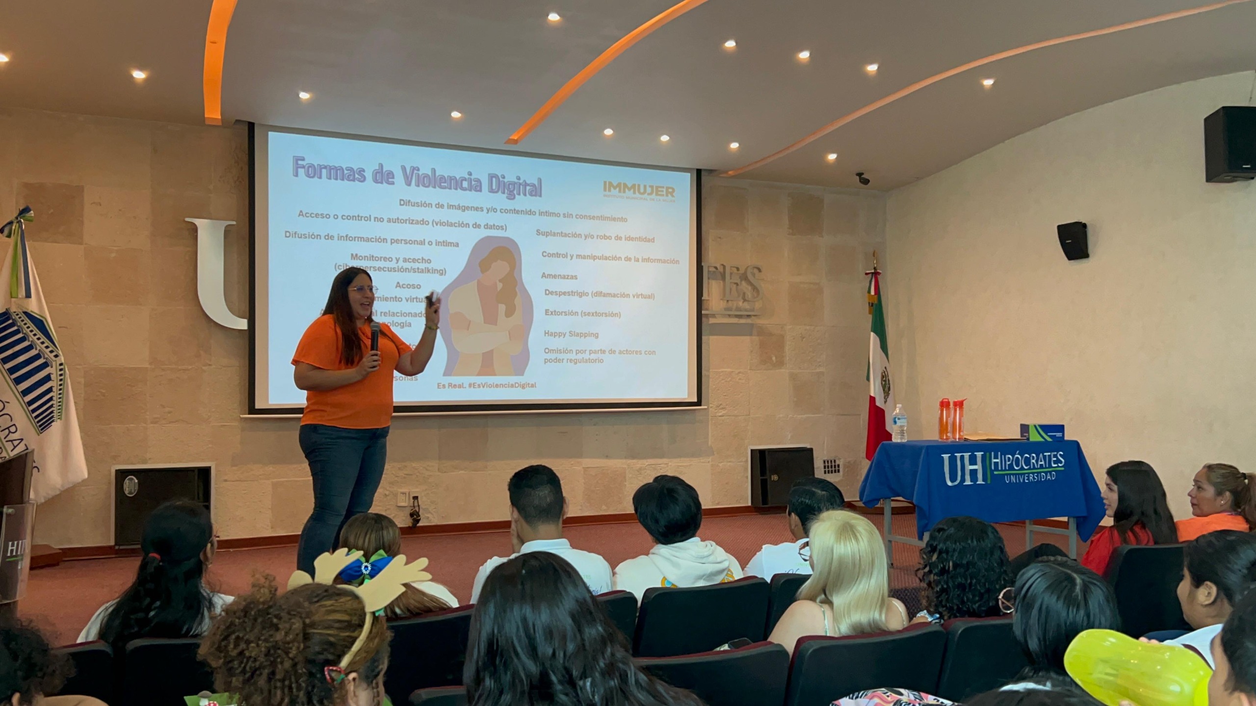 Dentro de las actividades, la psicóloga del Immujer, Karen Guadarrama Martínez, impartió la conferencia “Detrás de la red alguien se esconde”, sobre la violencia digital y las medidas de prevención ante posibles extorsiones en línea.