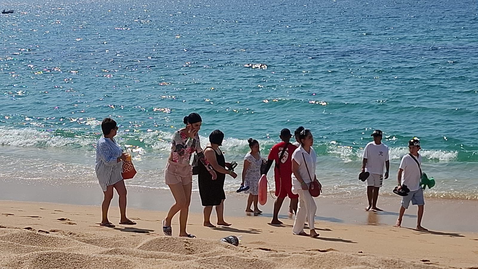Elementos de la División de Rescate Marino recorren a pie y en unidades los puntos de mayor riesgo, supervisan a bañistas y prestadores de servicios, y mantienen contacto directo con las familias presentes en la zona.