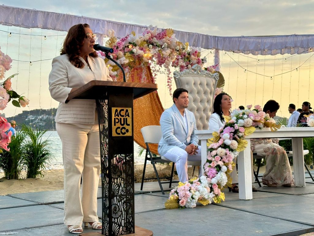 “El matrimonio es caminar y volar juntos; no soltarse cuando el cielo se nubla o la tormenta parece arrasarlo todo. No consiste sólo en compartir los días buenos, sino en abrazarse en los momentos difíciles. Es avanzar cuando el viento está a favor y también cuando sopla en contra. No se trata de que uno cargue al otro, sino de salir adelante como equipo. Hoy Acapulco es testigo de este vuelo colectivo: 250 historias distintas y 250 promesas que comienzan el mismo día”, expresó.