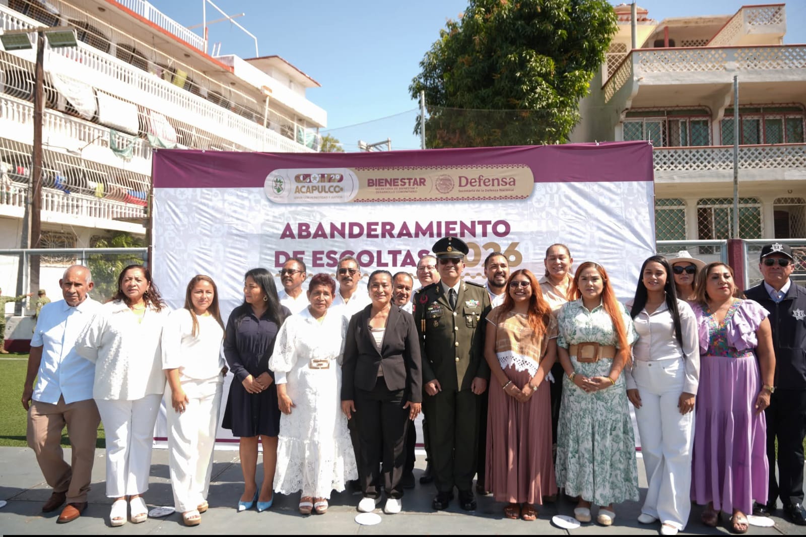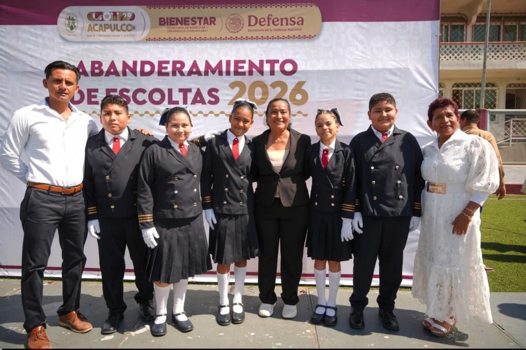 Acapulco, Gro., 24 de febrero de 2026.- La presidenta Abelina López Rodríguez encabezó el Abanderamiento de Escoltas de este año, ceremonia que involucró a 50 instituciones educativas del municipio y que destacó el respeto, la lealtad y el compromiso de la sociedad acapulqueña con los símbolos patrios.