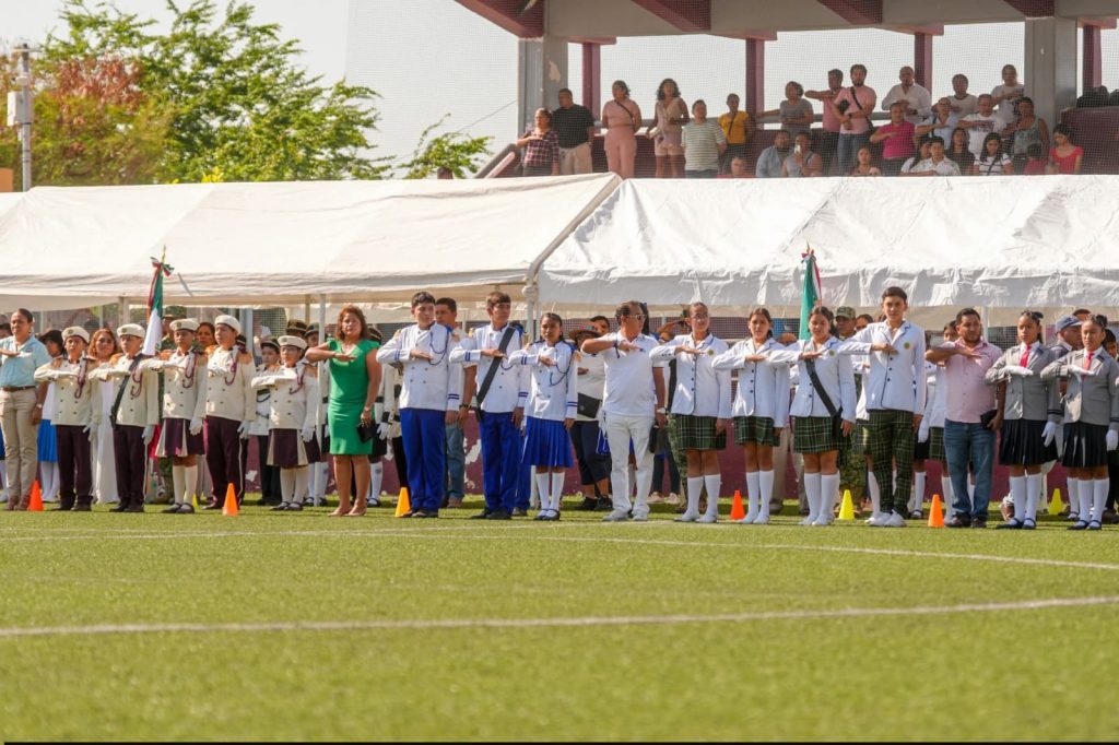 El acto se llevó a cabo en la Unidad Deportiva Vicente Suárez, donde se rindieron los honores correspondientes y participaron autoridades militares y navales, lo que evidenció la coordinación institucional y el compromiso con la cultura cívica y el respeto a los símbolos patrios.