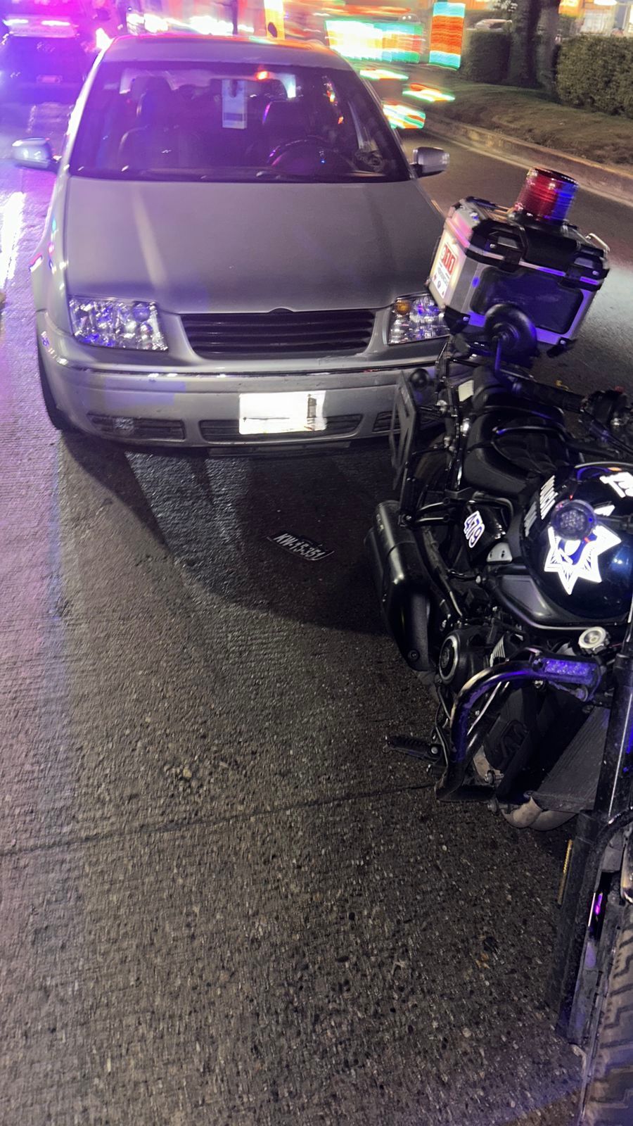 Al intentar evadir a los oficiales, el conductor provocó un impacto por alcance contra una motocicleta oficial. El incidente no ocasionó daños graves al personal, pero evidenció la importancia del cumplimiento del reglamento de tránsito.