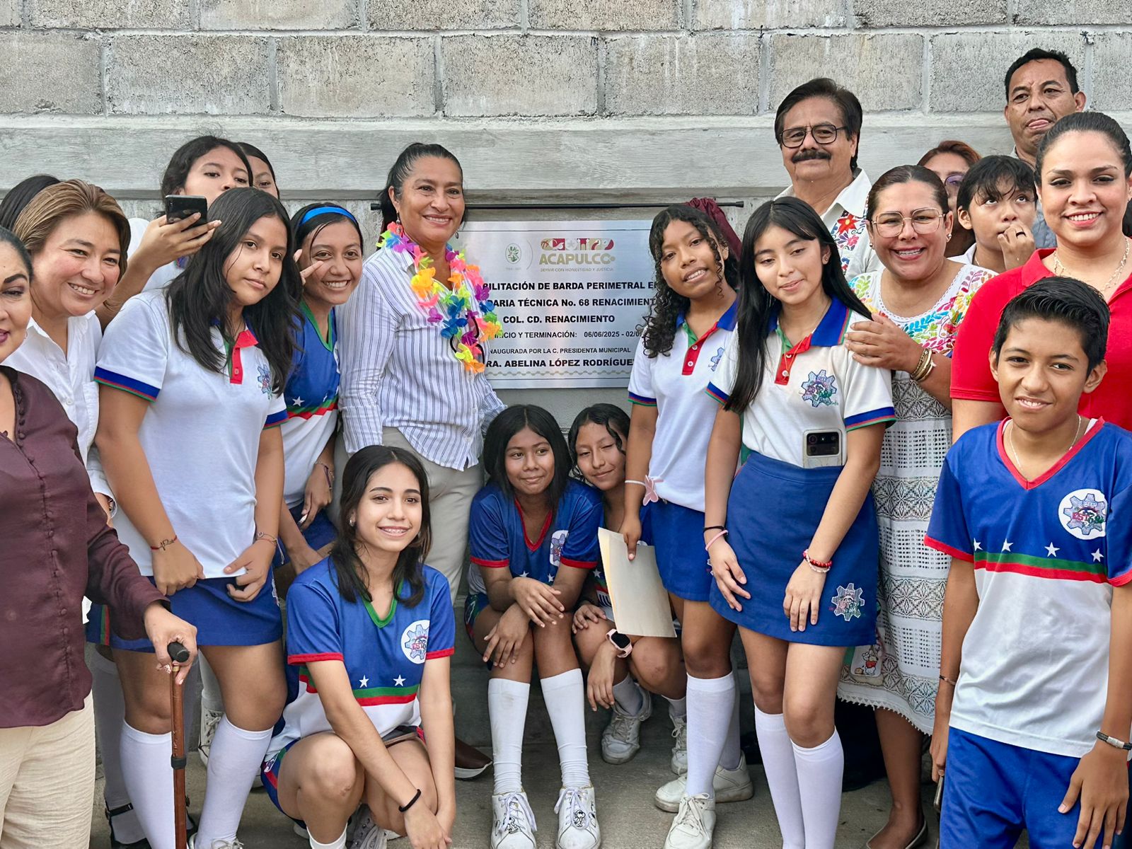 Acapulco, Gro., 11 de febrero de 2026.- Con una inversión de 2 millones 378 mil 564 pesos con 26 centavos, la Escuela Secundaria Técnica Número 68 fortalece su infraestructura física mediante la construcción de su barda perimetral, inaugurada por la presidenta municipal, Abelina López Rodríguez, lo que devuelve condiciones adecuadas de resguardo a la comunidad escolar después de las afectaciones provocadas por el huracán Otis.