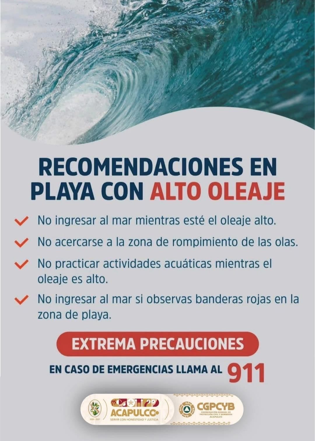El Gobierno Municipal de Acapulco reitera su compromiso con la seguridad de la población y recuerda que cualquier emergencia puede ser reportada al número 911, así como a las líneas de Protección Civil 74 44 83 83 28 y 74 44 85 61 70.