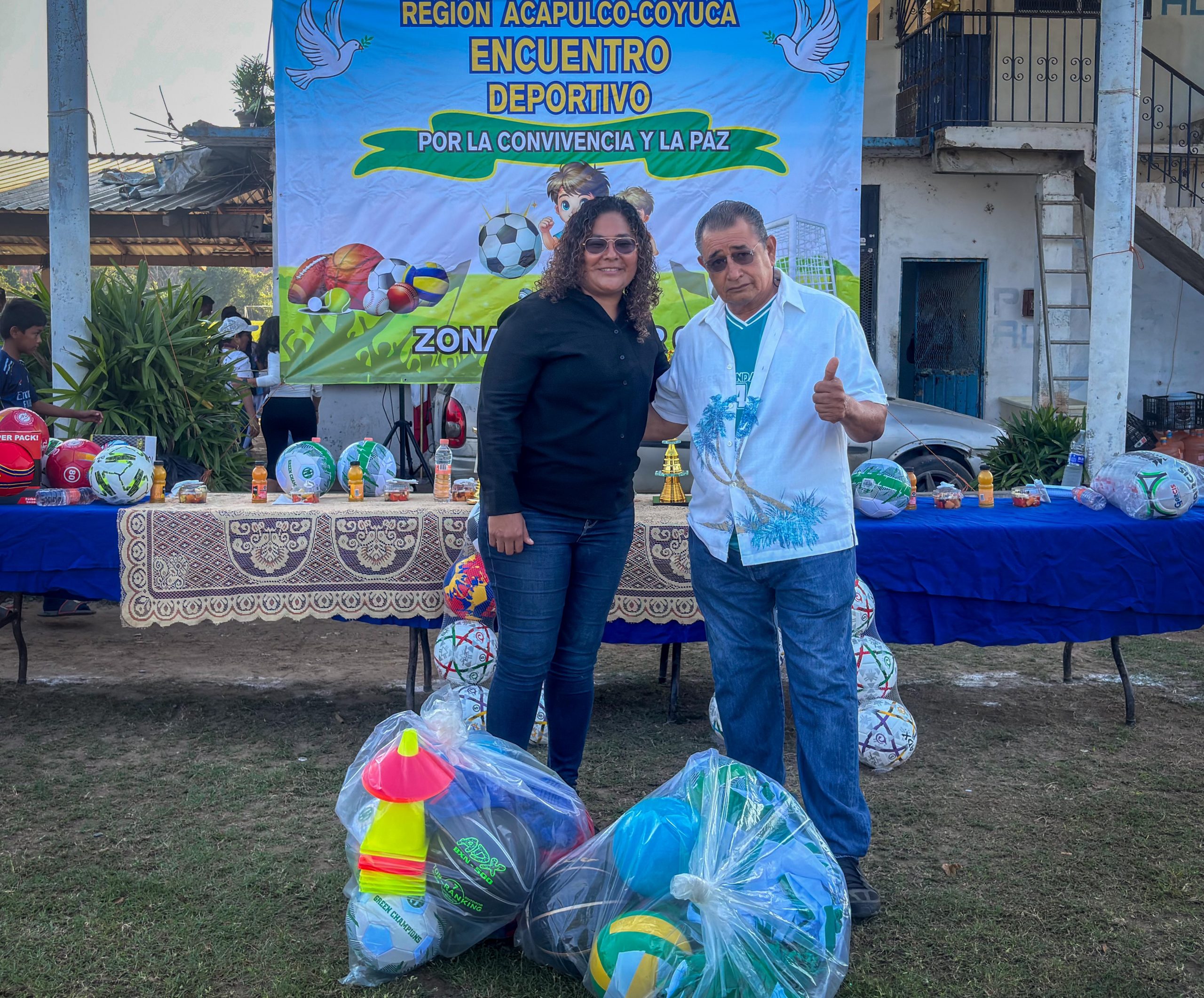 Delgado Bibiano acompañó la jornada junto a autoridades locales, entre ellas el presidente municipal de Coyuca de Benítez, Víctor Hugo Catalán Díaz, y el supervisor de la Zona Escolar 028, Ricardo Sarabi Orbe, quienes destacaron la relevancia de estas acciones para promover la convivencia, la educación y los valores comunitarios a través del deporte.