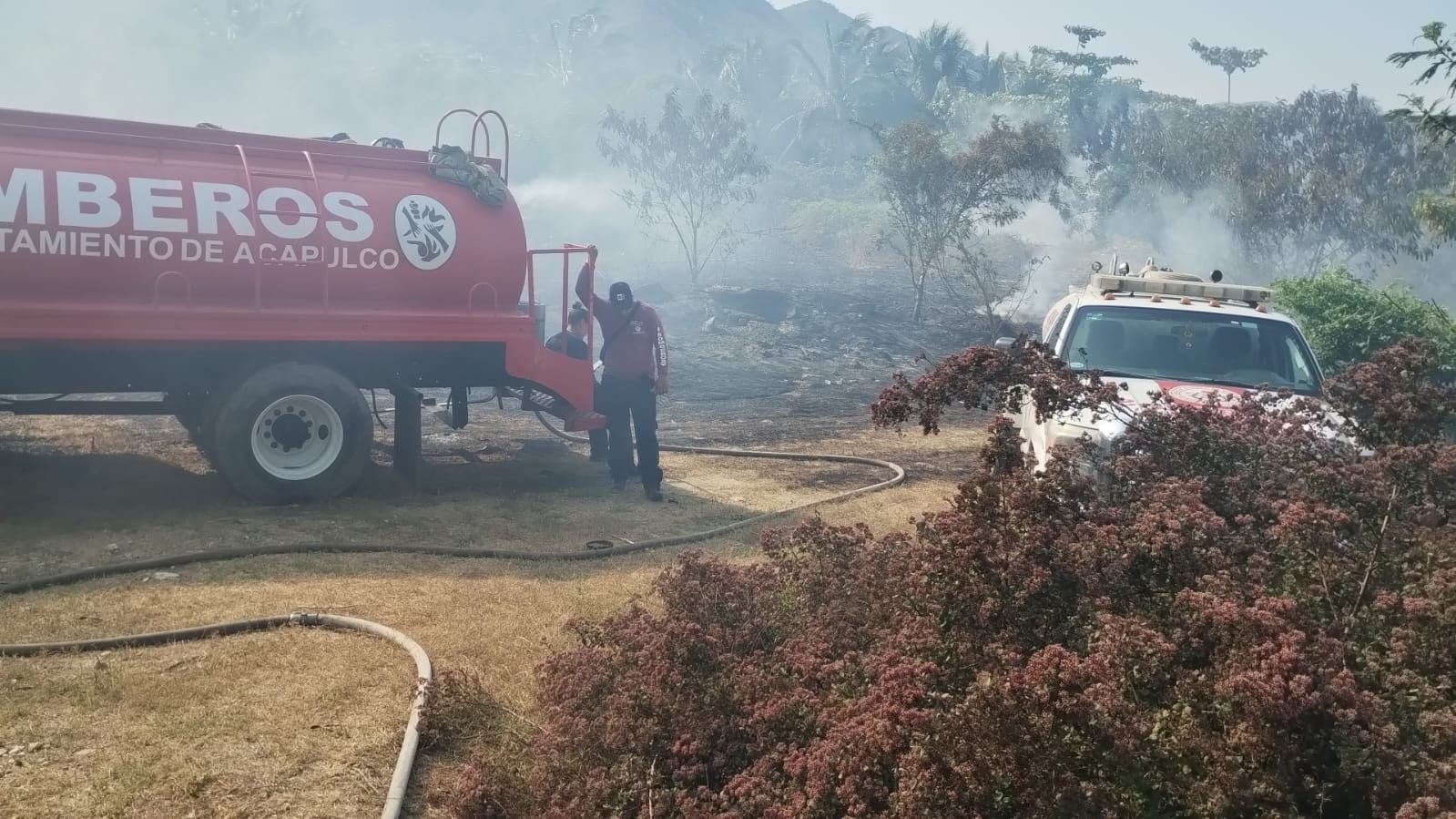 Acapulco, Gro., 21 de marzo de 2026.- La Coordinación General de Protección Civil y Bomberos de Acapulco controló de manera oportuna dos incendios en la zona Diamante.