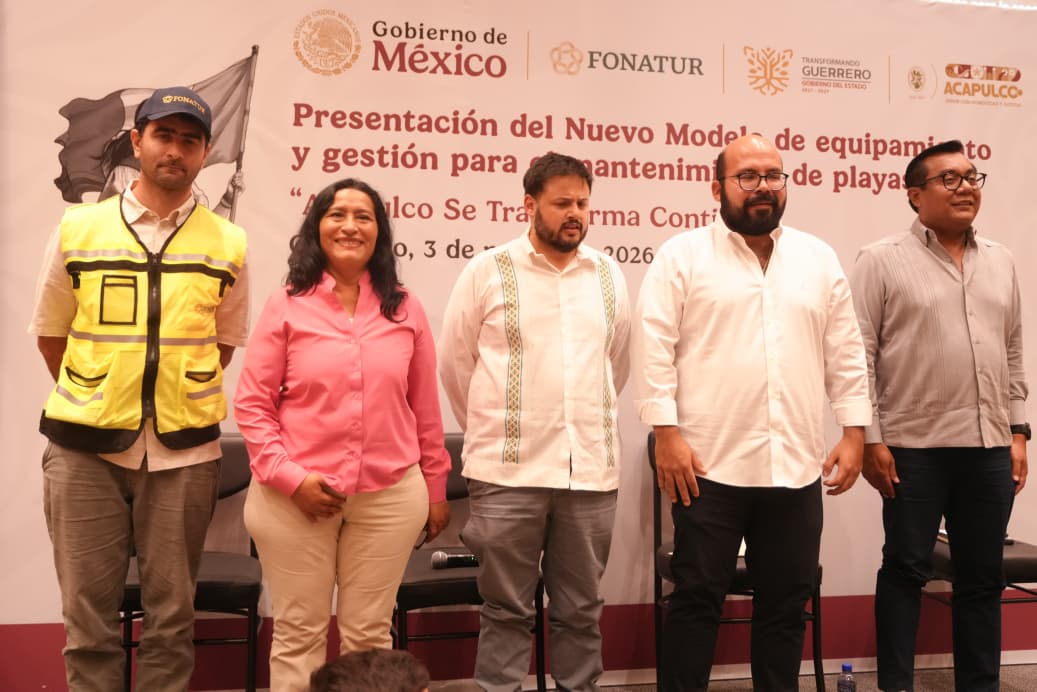 Acapulco, Gro., 03 de marzo de 2026.- El puerto inicia una etapa histórica en la gestión de su litoral con la presentación del Nuevo Modelo de Equipamiento y Mantenimiento de Playas “Acapulco se Transforma Contigo”, iniciativa del Gobierno de México a través del Fondo Nacional de Fomento al Turismo (Fonatur), organismo encargado de impulsar el desarrollo turístico en el país, que garantiza conservación, ordenamiento y desarrollo integral y representa un logro impulsado por la presidenta Abelina López Rodríguez, quien destacó la aplicación completa de los recursos, la limpieza permanente, accesos dignos y proyectos sostenibles.