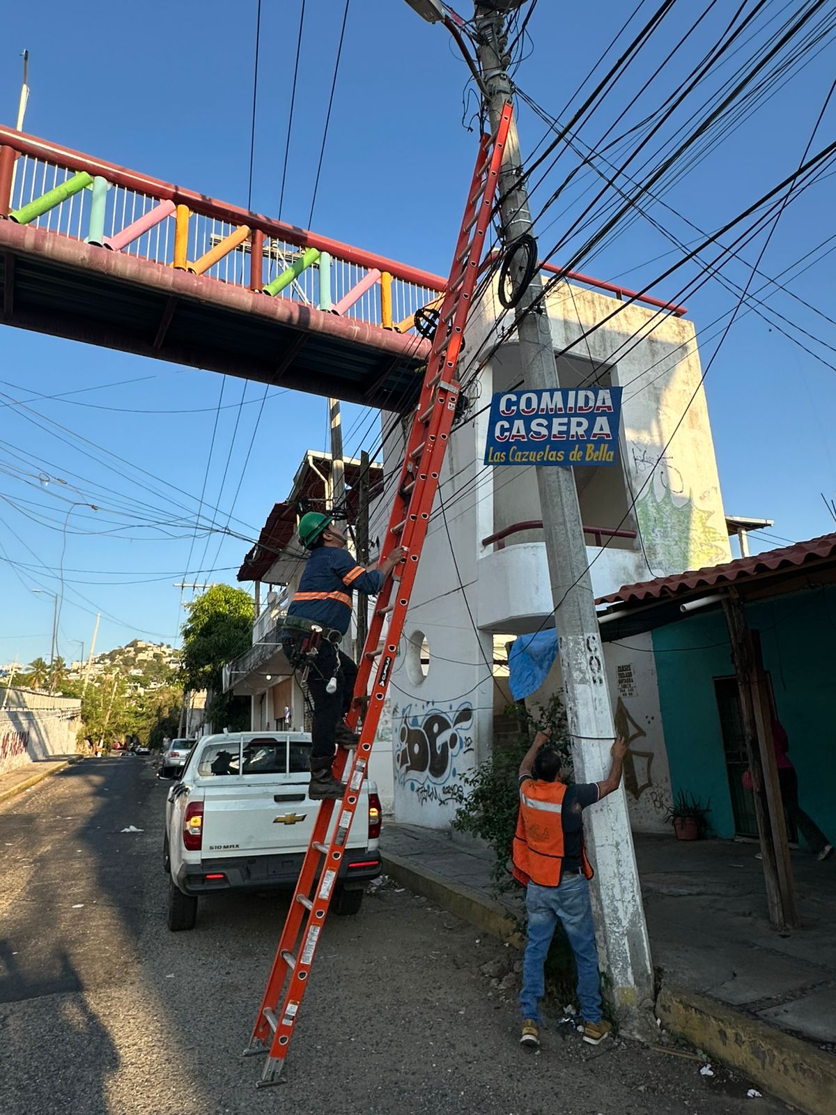 Personal de la Dirección de Alumbrado Público atendió reportes ciudadanos en avenidas principales, barrios, colonias, parques y andadores ubicados en El Derrumbe, Bella Vista, La Garita, Calzada Pie de la Cuesta, Pelícanos, Lomas del Mar, Jardín, Costa Azul, Pueblo Nuevo y Morelos, así como en el Zócalo, en áreas colindantes con la calle Quebrada y la zona escolar.