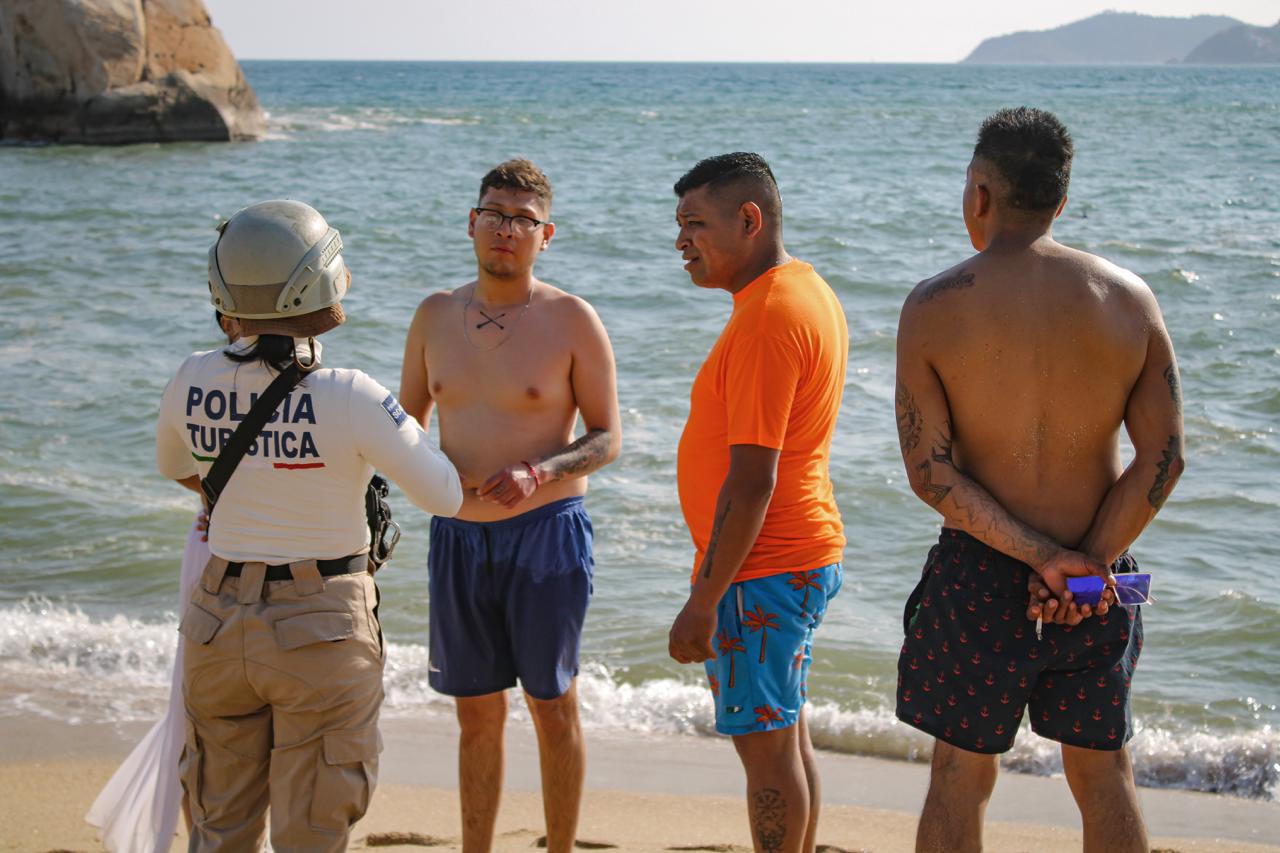 Policías turísticos, la Coordinación de Unidad de Monitoreo Acuático (CUMA) y la División de Rescate Marino recorren distintas playas del puerto, donde mantienen presencia preventiva para brindar información a la población y evitar incidentes.