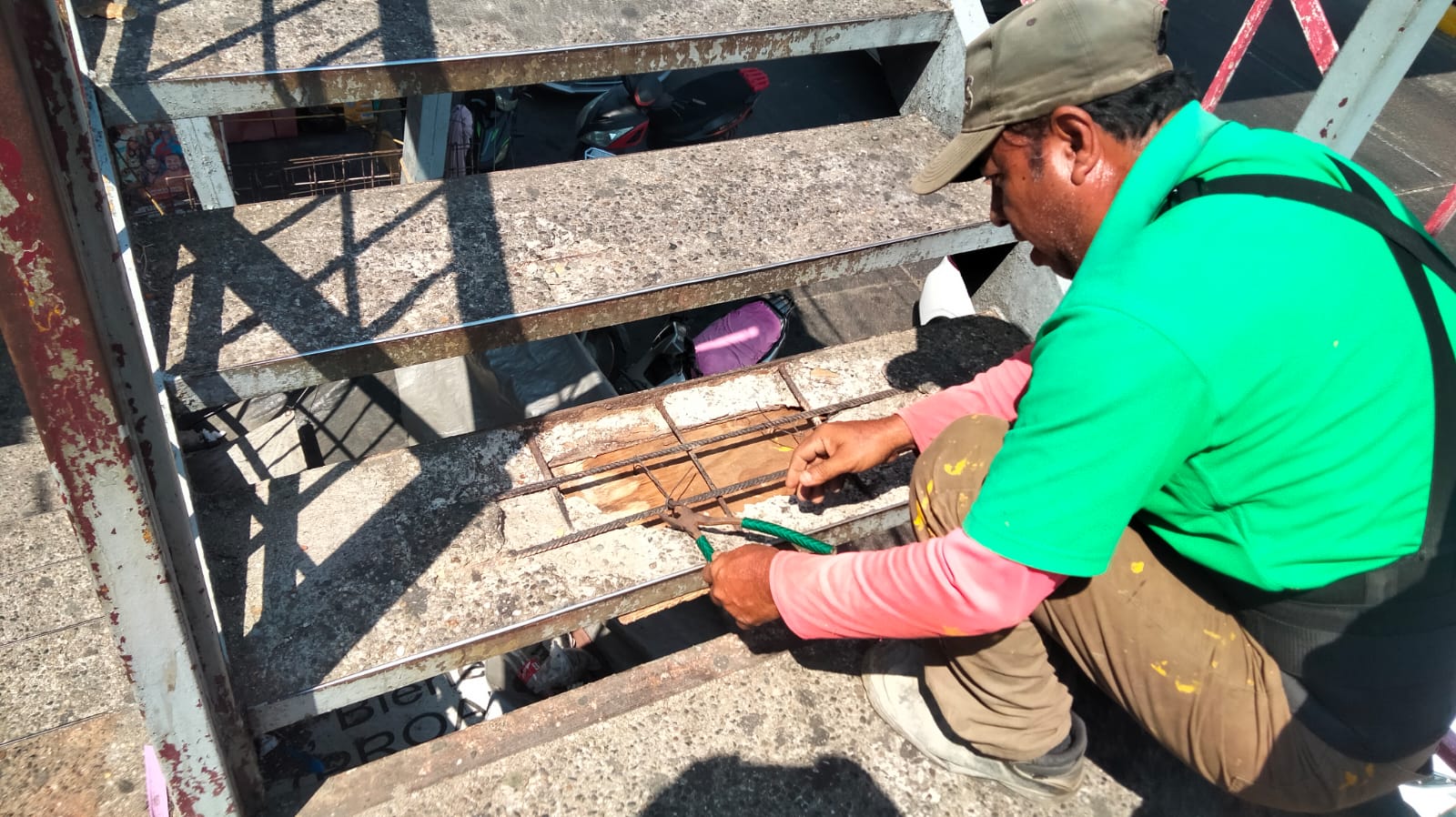 Los trabajos, efectuados por la Dirección de Conservación y Mantenimiento, abarcaron la reparación de escalones mediante colado de concreto, el reforzamiento de barandales y la limpieza de la zona, a fin de disminuir los riesgos señalados por la ciudadanía.