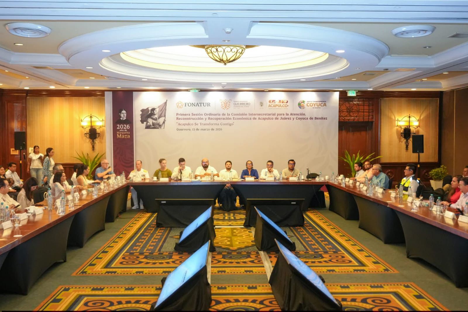 Durante la Primera Sesión Ordinaria de la Comisión Intersecretarial para la Atención, Reconstrucción y Recuperación Económica de Acapulco y Coyuca de Benítez “Acapulco se Transforma Contigo”, López Rodríguez destacó la coordinación entre el gobierno municipal, las dependencias federales y los legisladores presentes, así como los resultados alcanzados en menos de 18 meses.