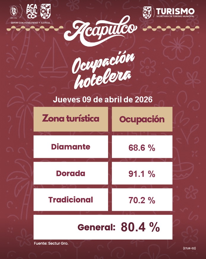 Estas cifras confirman el trabajo coordinado del Gobierno de Acapulco, que preside Abelina López Rodríguez, enfocado en la promoción turística, el ordenamiento de la franja hotelera y la mejora de la seguridad y de los servicios públicos.