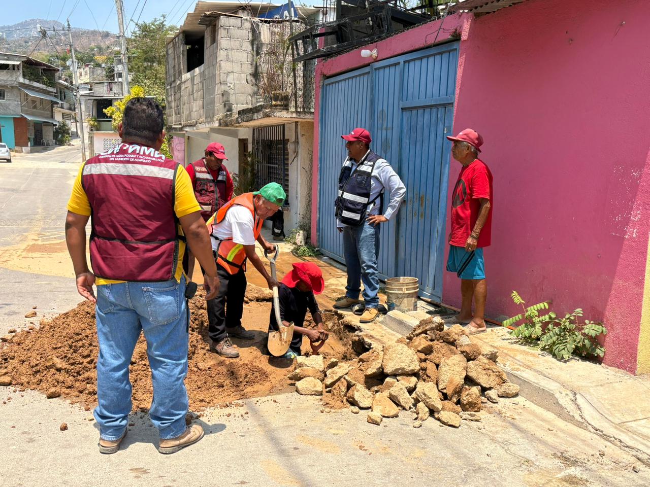 Acapulco, Gro., 10 de abril de 2026.- Personal de la Comisión de Agua Potable y Alcantarillado del Municipio de Acapulco (Capama) desplegó un operativo integral en diversas colonias de la zona conurbada del puerto, donde brigadas técnicas atendieron fugas en la red, restituyeron superficies dañadas por trabajos hidráulicos y acordaron modificaciones en el esquema de distribución para mejorar el suministro en distintos sectores.