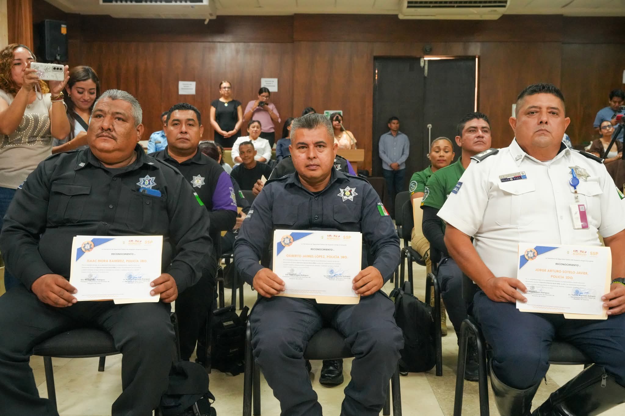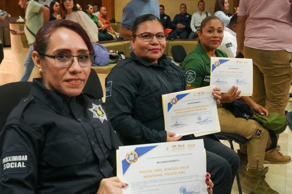 Acapulco, Gro., 24 de abril de 2026.- Tras una temporada vacacional con alta demanda de auxilio en playas y zonas urbanas, policías fueron reconocidos por la presidenta municipal, Abelina López Rodríguez, por su respuesta operativa en rescates, atención a emergencias y acompañamiento a mujeres víctimas de violencia.