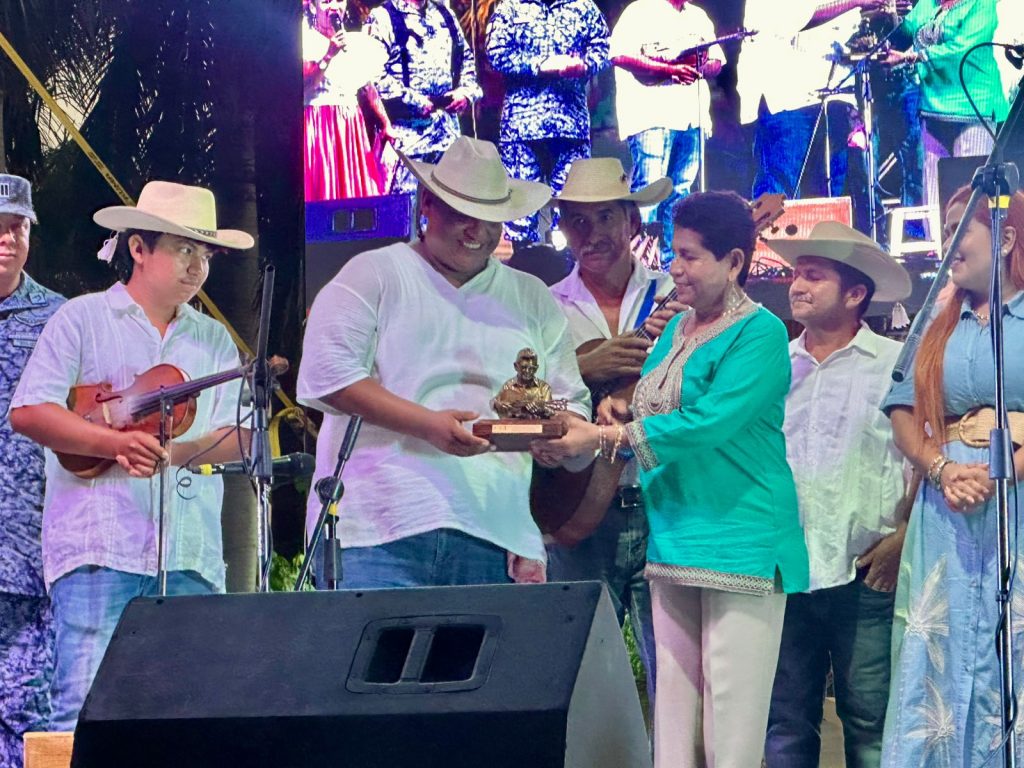 En representación de la alcaldesa, la secretaria de Bienestar y Desarrollo Comunitario, Flora Contreras Santos, entregó al conjunto Los Costeños de Coahuayutla la presea Agustín Basurto Herrera, Patrimonio Vivo de Guerrero, reconocimiento que distingue una trayectoria profundamente vinculada con la preservación de la música tradicional de la Costa Grande.
