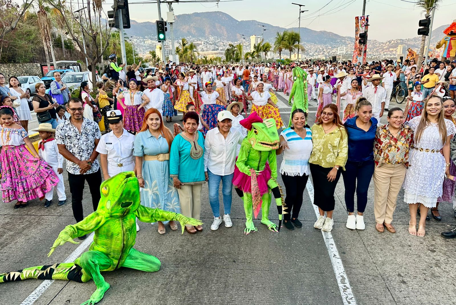 Acapulco, Gro., 09 de abril de 2026.- La riqueza musical y dancística de la entidad tomó la Costera Miguel Alemán con el Fandango Guerrerense, encuentro cultural promovido por la presidenta municipal Abelina López Rodríguez, que reunió a cientos de danzantes y músicos con el tradicional Iguanazo 2026 como una de las estampas más vibrantes del Jolgorio Acapulqueño en el Parque de la Reina.