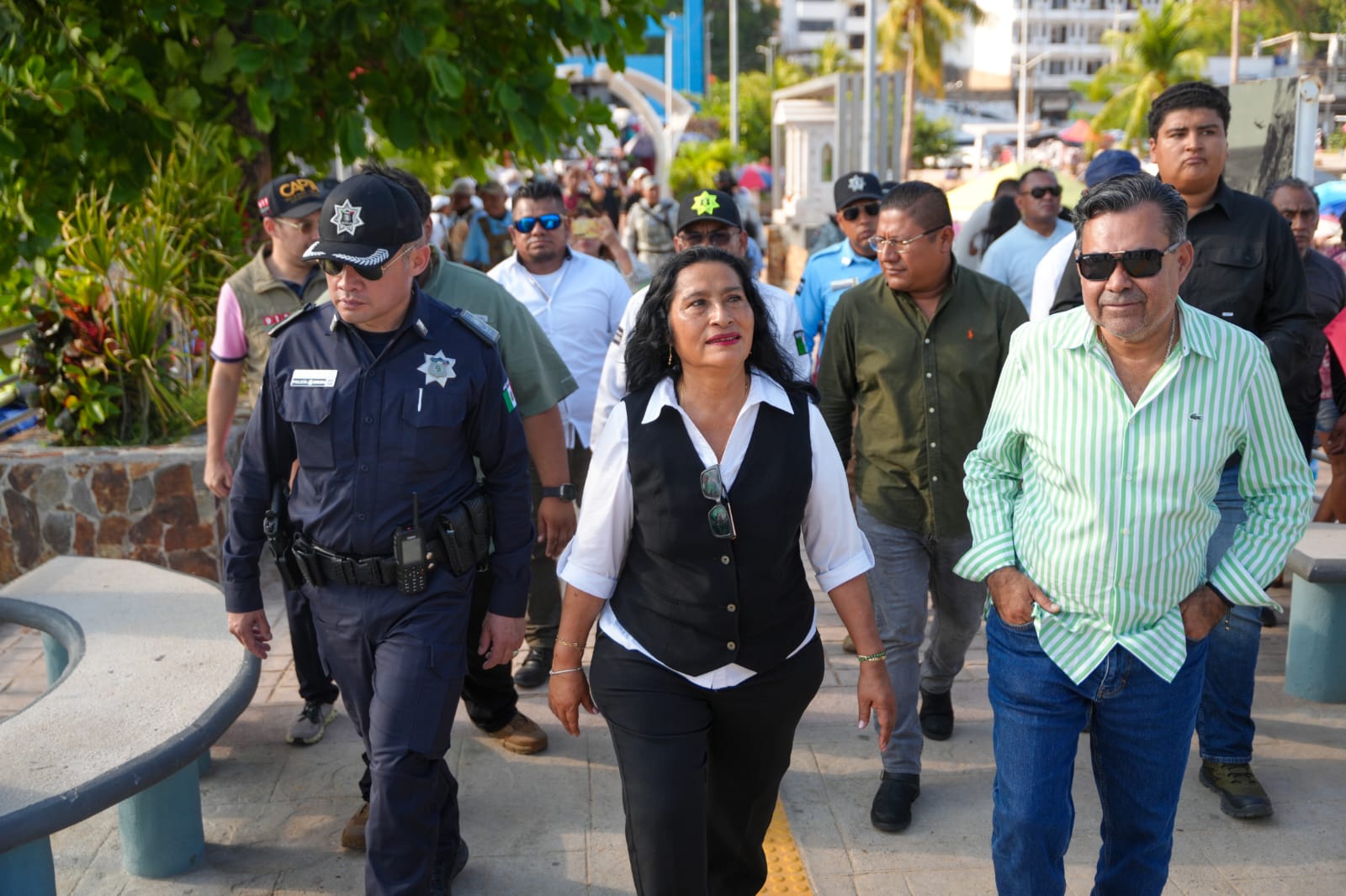 Acompañaron a la presidenta municipal el secretario de Turismo, Noé Peralta Herrera; el titular de la Secretaría de Seguridad Pública, Federico Argumedo Rodríguez; y el director de la Comisión de Agua Potable y Alcantarillado del Municipio de Acapulco (Capama), Antonio Lorenzo Rojas Marcial.