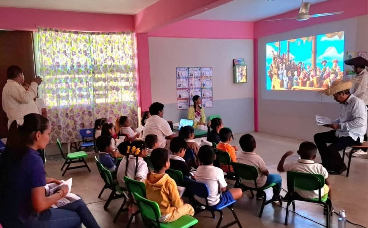 Por indicaciones de la presidenta Abelina López Rodríguez, la Dirección de Ecología y Protección al Medio Ambiente llevó lecturas y actividades lúdicas a estudiantes del Jardín de Niños Estefanía Castañeda, en Xaltianguis.
