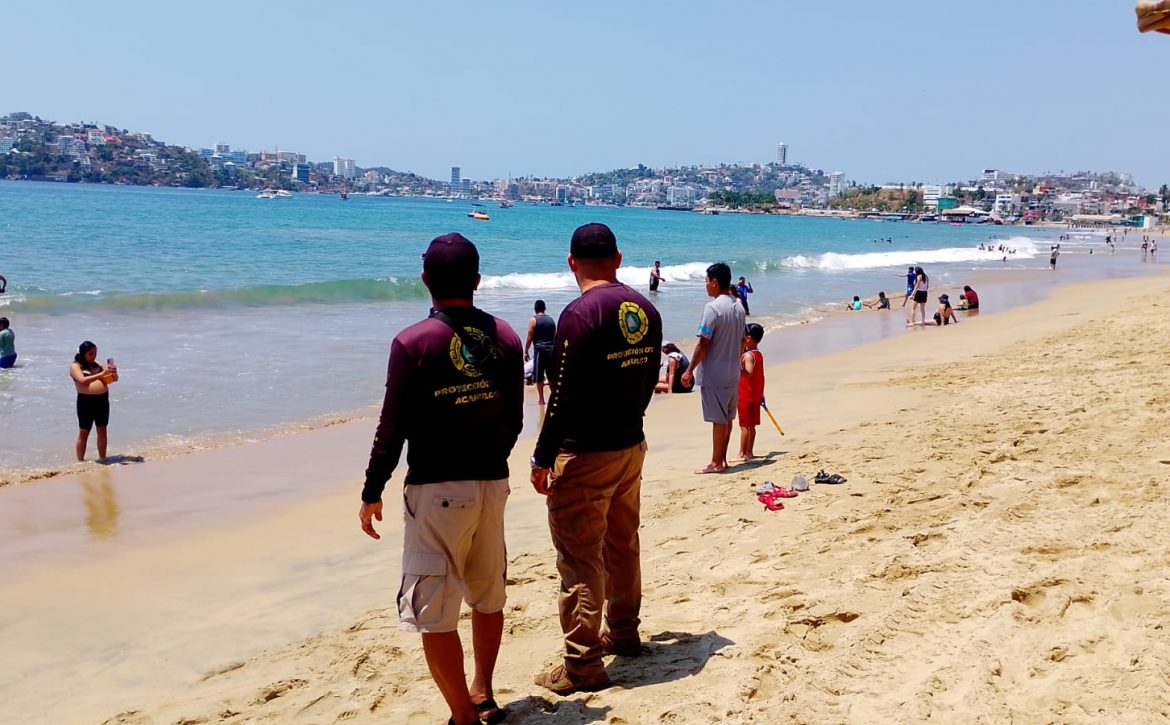 Acapulco, Gro., 11 de abril de 2026.- La Coordinación General de Protección Civil y Bomberos (CGPCyB) de Acapulco refuerza acciones preventivas ante el alto oleaje con presencia permanente en zonas de playa para salvaguardar la integridad de la población y visitantes.