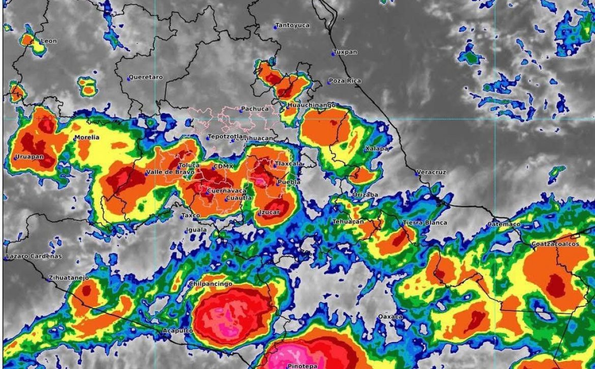 De acuerdo con el reporte vespertino del Servicio Meteorológico Nacional (SMN), se esperan precipitaciones acompañadas de descargas eléctricas, vientos fuertes, encharcamientos, inundaciones, deslaves y aumento en los niveles de ríos y arroyos. Se prevé viento del norte con velocidad de 20 a 30 kilómetros por hora y oleaje de dos a tres metros en las costas de Acapulco.