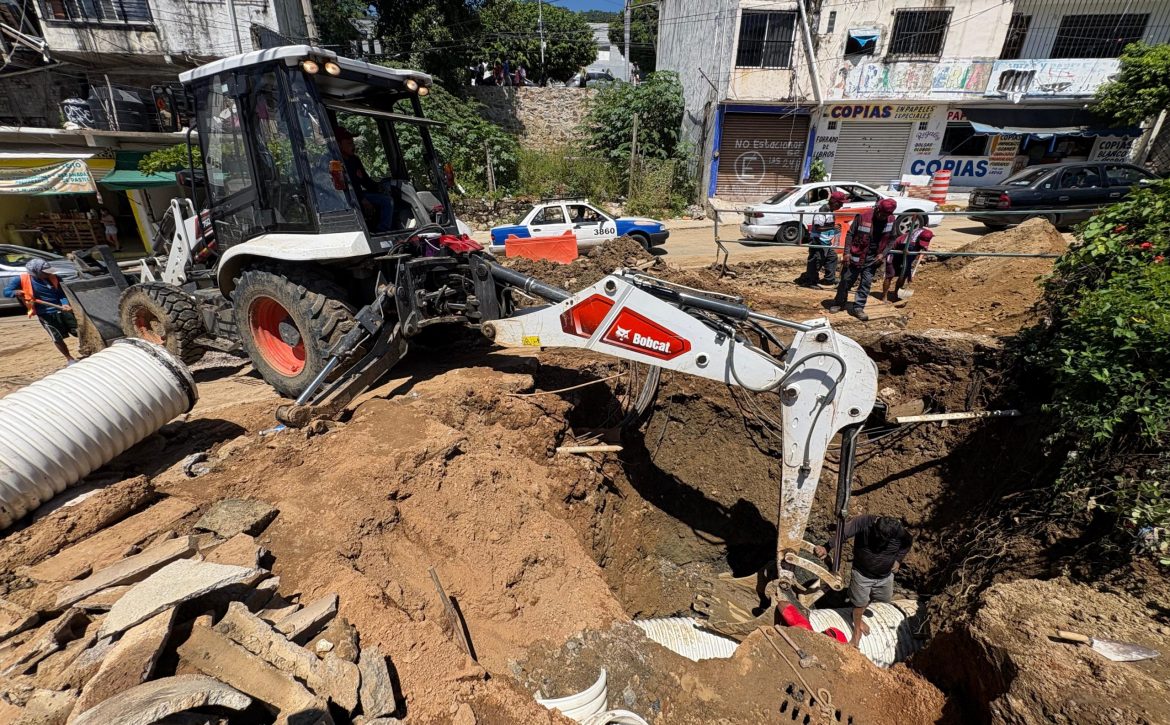 Acapulco, Gro., 01 de octubre de 2025. El Gobierno Municipal de Acapulco, a través de brigadas de la Coordinación de Servicios Públicos, atendió la petición de locatarios del poblado de Tres Palos con el desazolve de un canal que cruza el mercado, ya que durante la temporada de lluvias el nivel del agua se eleva y afecta las instalaciones.