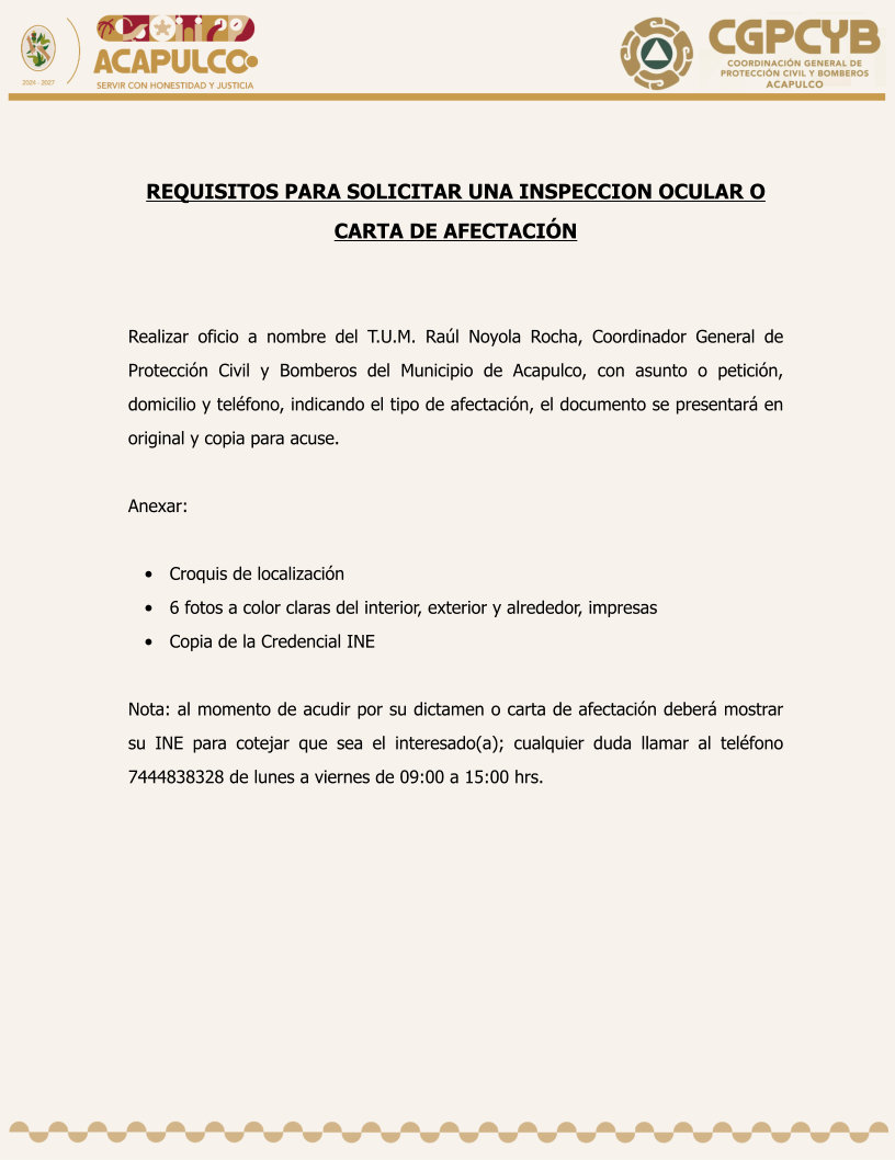 SOLICITAR UNA INSPECCION OCULAR O CARTA DE