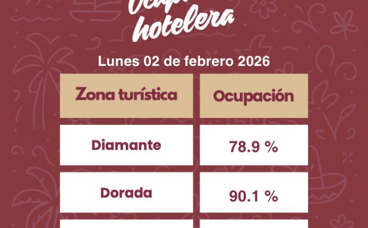 En la jornada de cierre, la zona Dorada reportó 90.1 por ciento de ocupación; la zona Diamante alcanzó 78.9 por ciento y la Tradicional o Náutica registró 75.1 por ciento. En conjunto, estos indicadores representaron 6 mil 851 habitaciones ocupadas, para un promedio general de 84.3 por ciento.