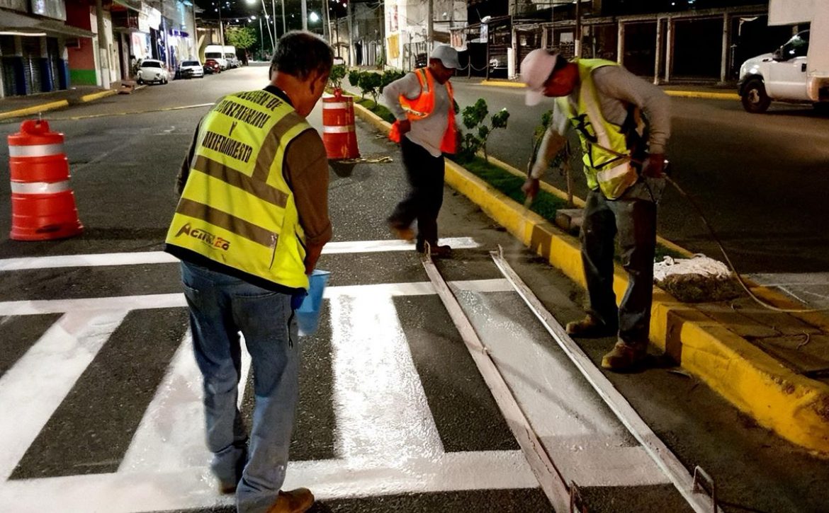 Por indicaciones de la presidenta municipal, Abelina López Rodríguez, se pintaron y rehabilitaron líneas peatonales tipo “marimba” en tramos estratégicos, con materiales de alta visibilidad que garantizan respeto a los pasos y ordenan la circulación.