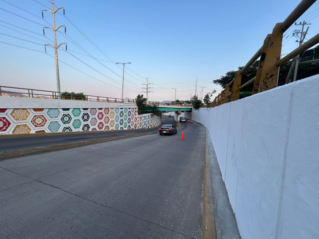 Acapulco, Gro., 22 de marzo de 2026.- Como parte de las jornadas de mantenimiento urbano en distintos puntos de la ciudad, el Gobierno de Acapulco que preside la alcaldesa Abelina López Rodríguez a través de la Dirección de Imagen Urbana intervino el puente vehicular ubicado a la altura de la colonia Hogar Moderno y la avenida Ejido.