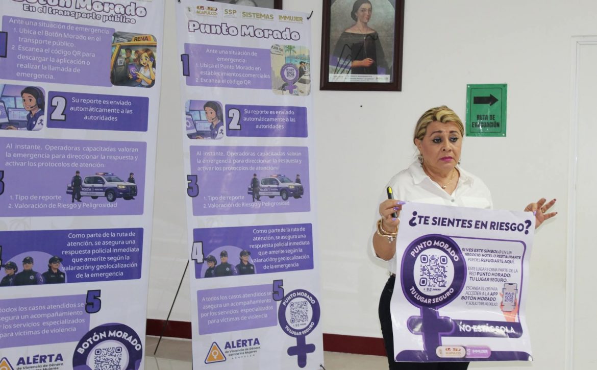 Acapulco, Gro., 24 de marzo de 2026.- El Instituto Municipal de la Mujer (Immujer) llevó a cabo la Capacitación para la Implementación de la Campaña de Difusión “Botón Morado”, dirigida al personal de distintas áreas del Ayuntamiento que atiende a mujeres en situación de violencia.