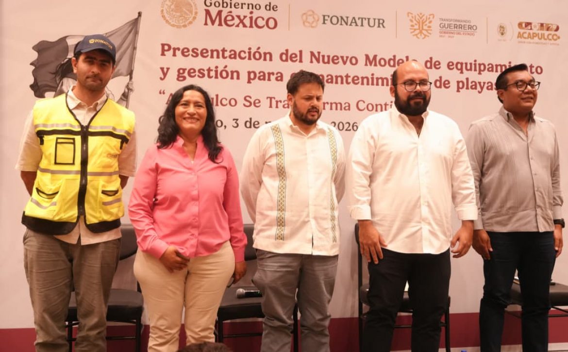 Acapulco, Gro., 03 de marzo de 2026.- El puerto inicia una etapa histórica en la gestión de su litoral con la presentación del Nuevo Modelo de Equipamiento y Mantenimiento de Playas “Acapulco se Transforma Contigo”, iniciativa del Gobierno de México a través del Fondo Nacional de Fomento al Turismo (Fonatur), organismo encargado de impulsar el desarrollo turístico en el país, que garantiza conservación, ordenamiento y desarrollo integral y representa un logro impulsado por la presidenta Abelina López Rodríguez, quien destacó la aplicación completa de los recursos, la limpieza permanente, accesos dignos y proyectos sostenibles.