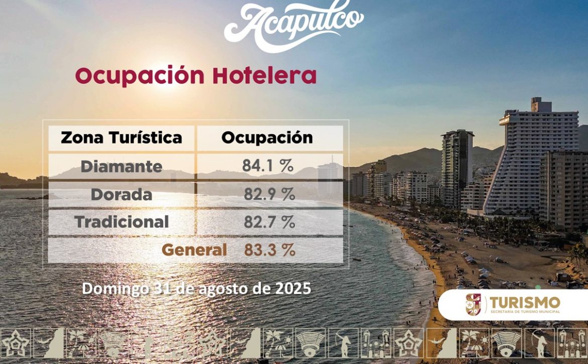 Estos resultados reflejan la relevancia continua de Acapulco como destino de alto atractivo nacional, sustentado en la hospitalidad de su gente, la belleza de sus playas y su riqueza natural y cultural.