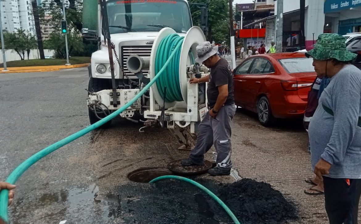 Desde primeras horas, el personal técnico realizó limpieza del drenaje sanitario en zonas como Base Naval, Caleta, Las Anclas, el Parque Papagayo y el área de hospitales, con el objetivo de preservar el buen funcionamiento de los colectores y evitar brotes o escurrimientos.
